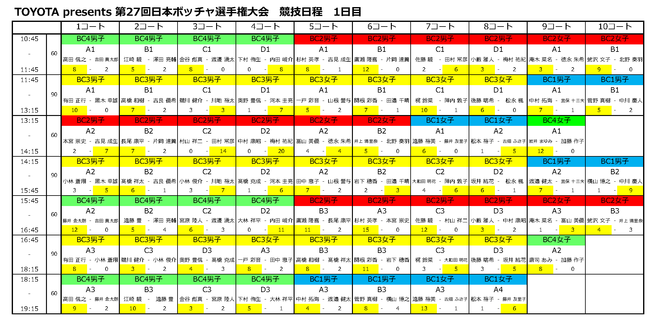 TOYOTA presents 第27回日本ボッチャ選手権大会の第1日目が全て終了しました。