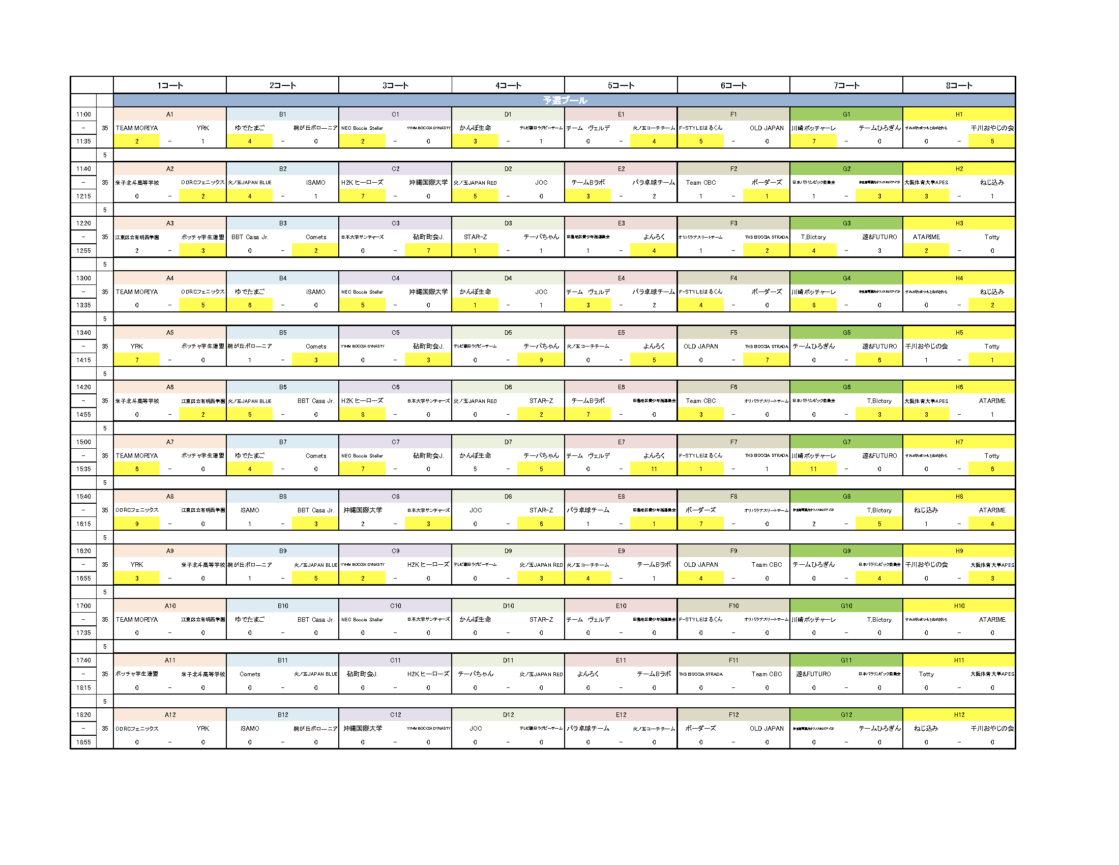 試合ごとの競技結果速報をこちらのページにて随時更新してまいります。