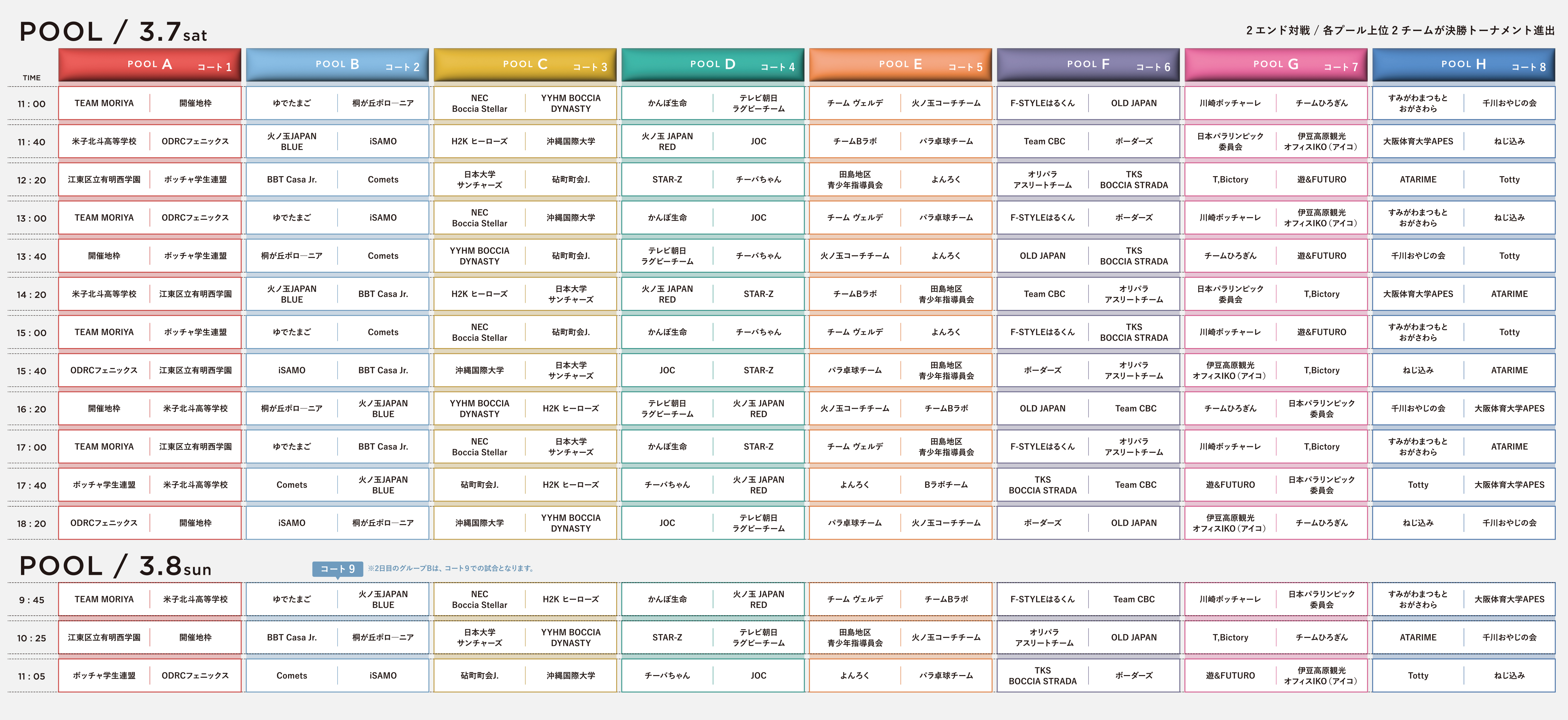 また、予選リーグ各プールの対戦表が本日公開されました。