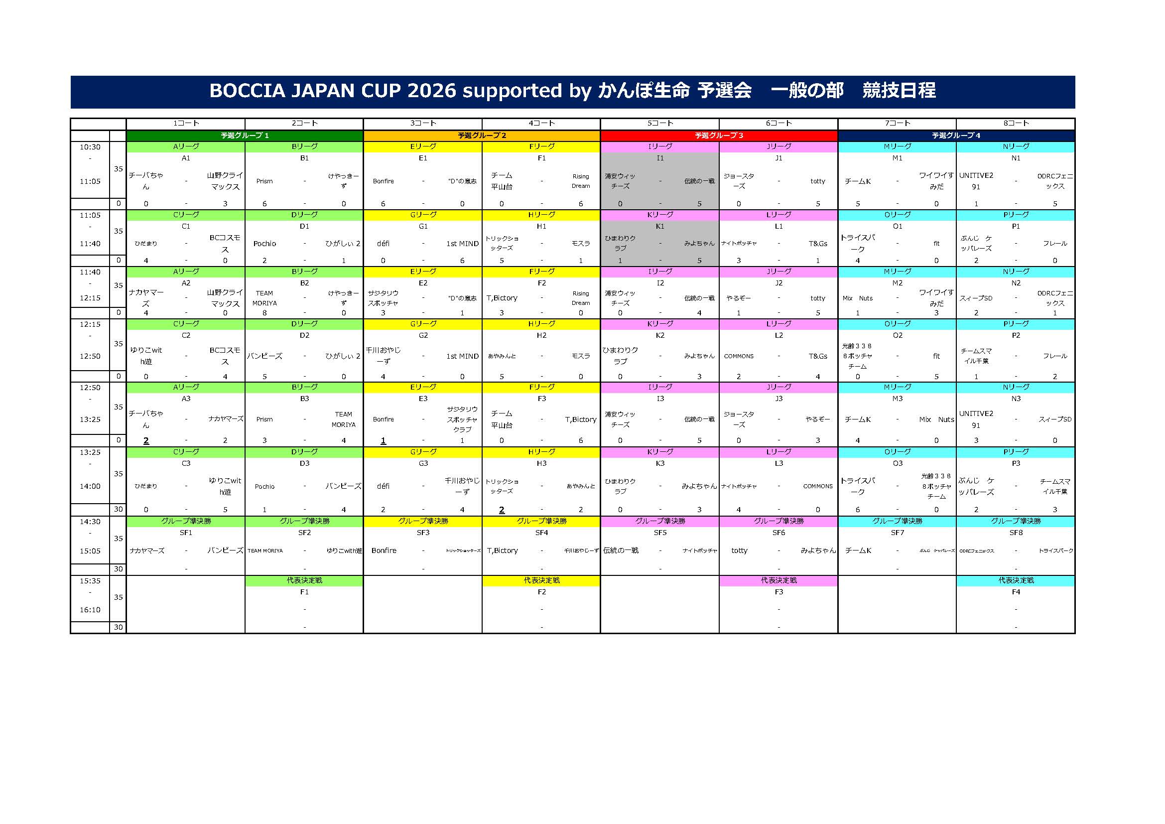 【BOCCIA JAPAN CUP 2026 supported by かんぽ生命】予選会(一般の部)- 速報 -