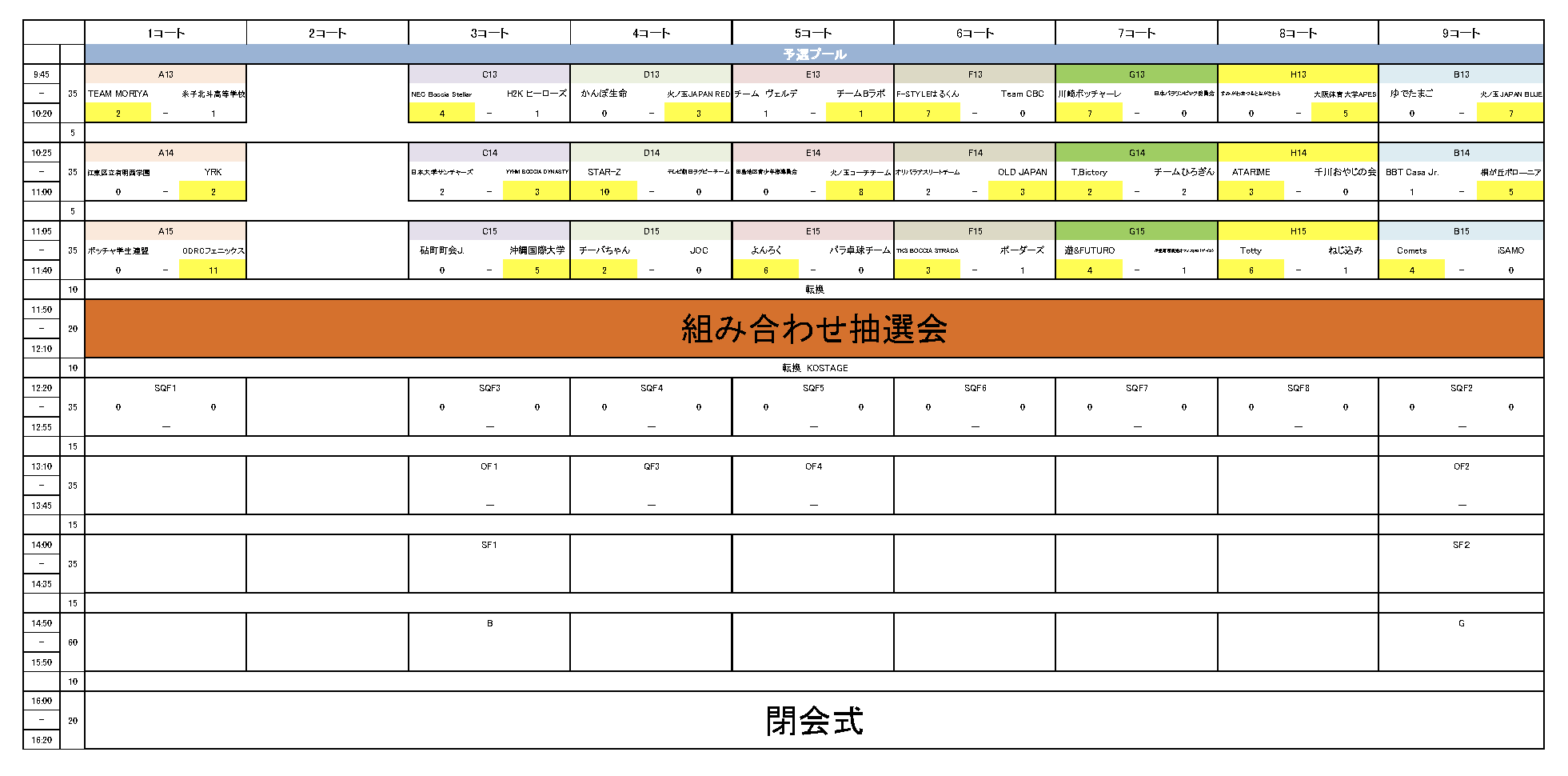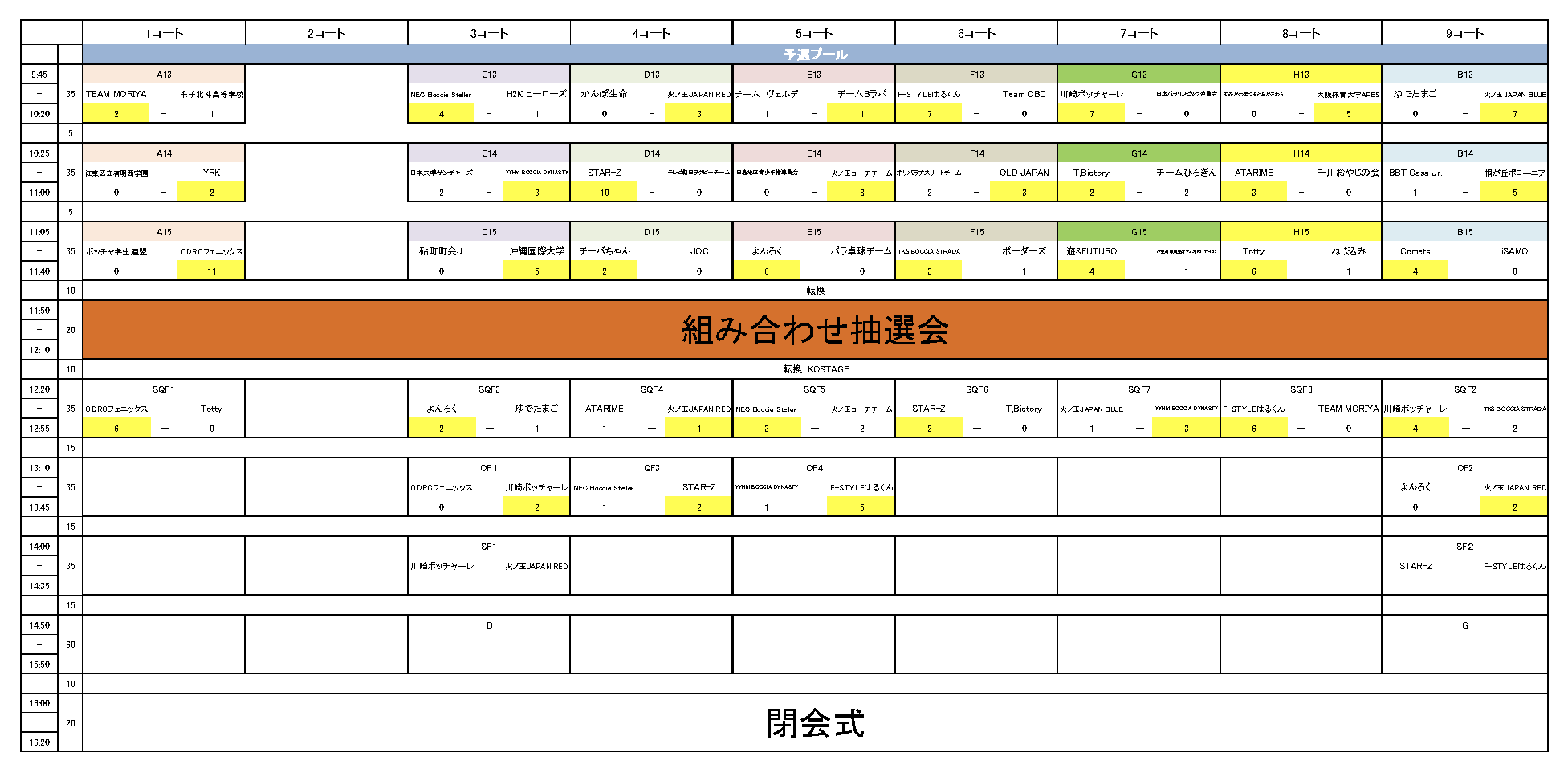 試合ごとの競技結果速報をこちらのページにて随時更新してまいります。